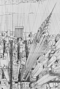 The black and white silkscreens of the Empire State Building and the Chrysler Building were printed at NEBO in Long Island City, NY, by master printer Nenad Bozic, in two colors (black and pale gray).