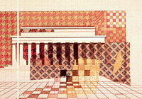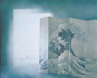 Japanese Interior #6, mixed media on rag board, 15 x 19"